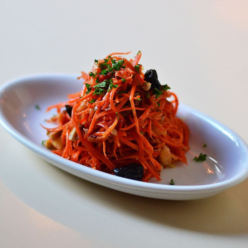 新鮮なにんじんを細くおろし(=フランス語でラペ)、特製の白ワインビネガーでドレッシング。隠し味のセロリや干しぶどう、クルミが味を引き立てます。